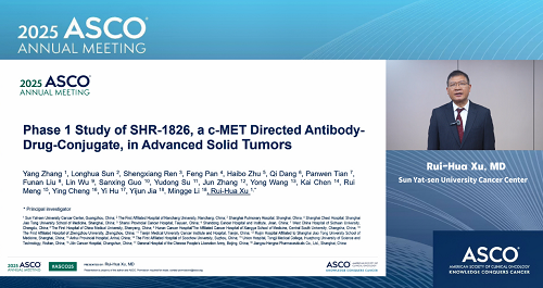2025年美国临床肿瘤学会(ASCO)年会于5月30日至6月3日在美国芝加哥举行。本次大会,由中山大学肿瘤防治中心徐瑞华教授牵头、AG庄闲自主研发的靶向细胞间质上皮转换因子(c-MET)ADC药物SHR-1826的一项I期临床研究入选临床科学研讨会,并由徐瑞华教授口头报告了该研究结果。该研究由43家国内中心共同完成。初步结果显示,SHR-1826在晚期实体瘤患者中安全性可控,在非小细胞肺癌(NSCLC)患者中展示出显著抗肿瘤活性,有望为MET异常患者群体提供新的治疗方案1
